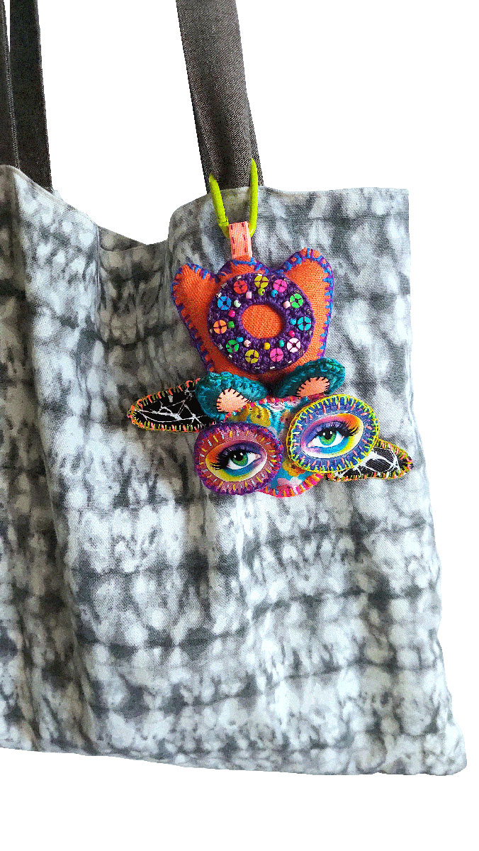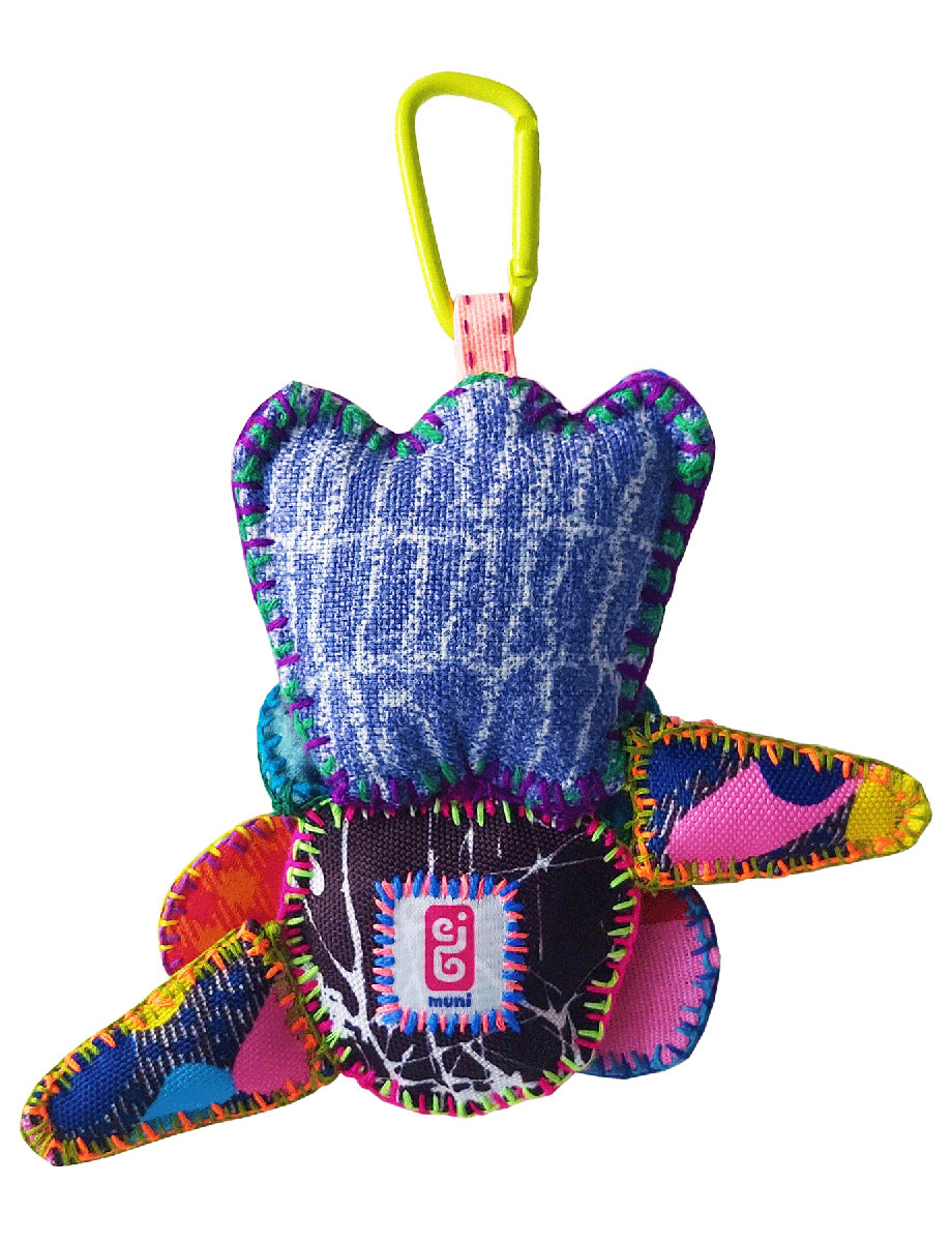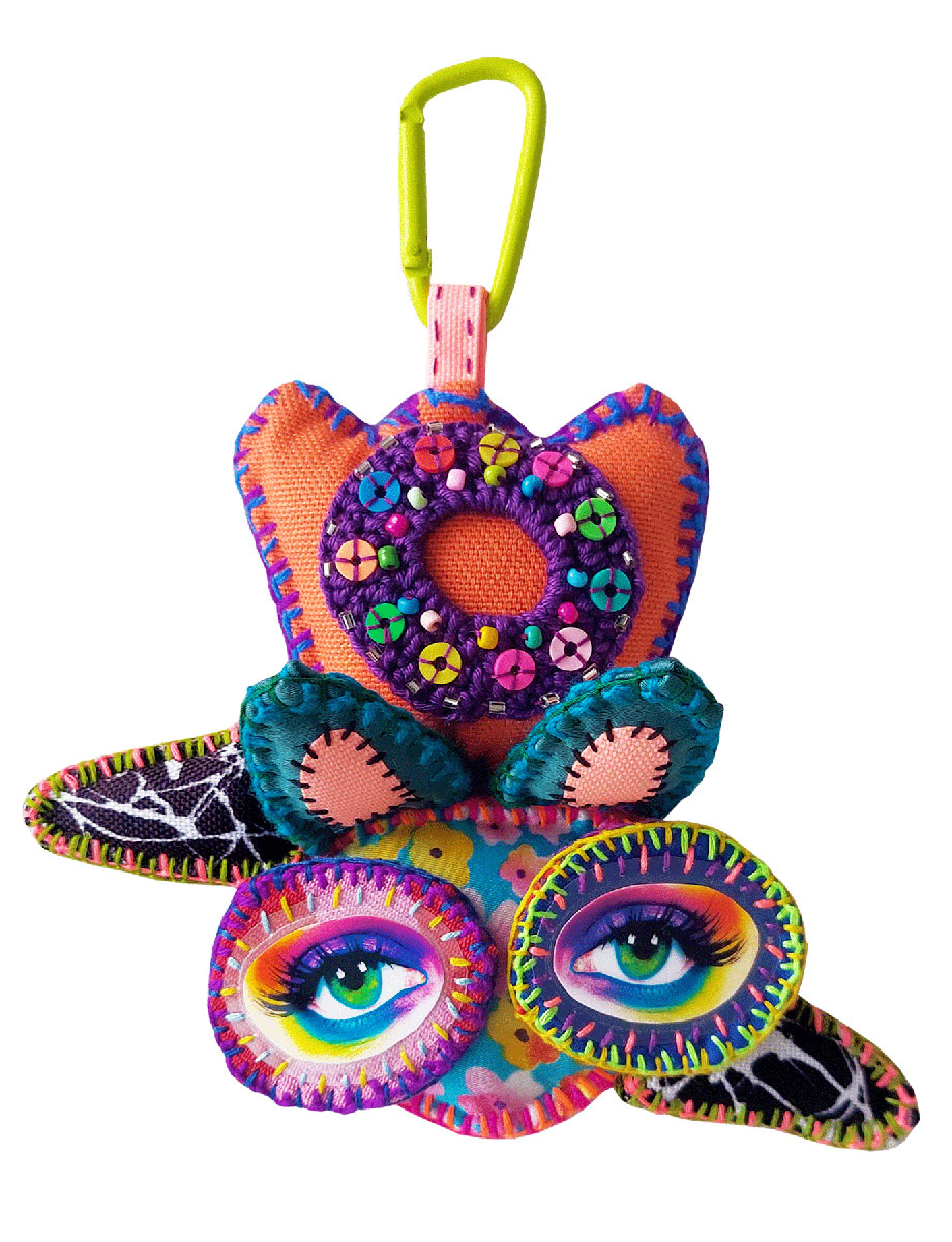 Her joyful form beautifully weaves together vibrant colors and playful details, reflecting a spirit of adventure and happiness. She is a mix of hand-stitched details and thoughtful design, a true one-of-a-kind creation.
