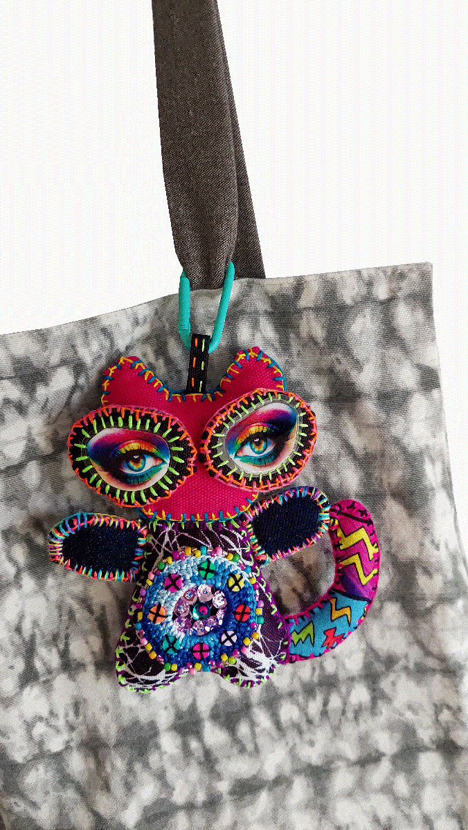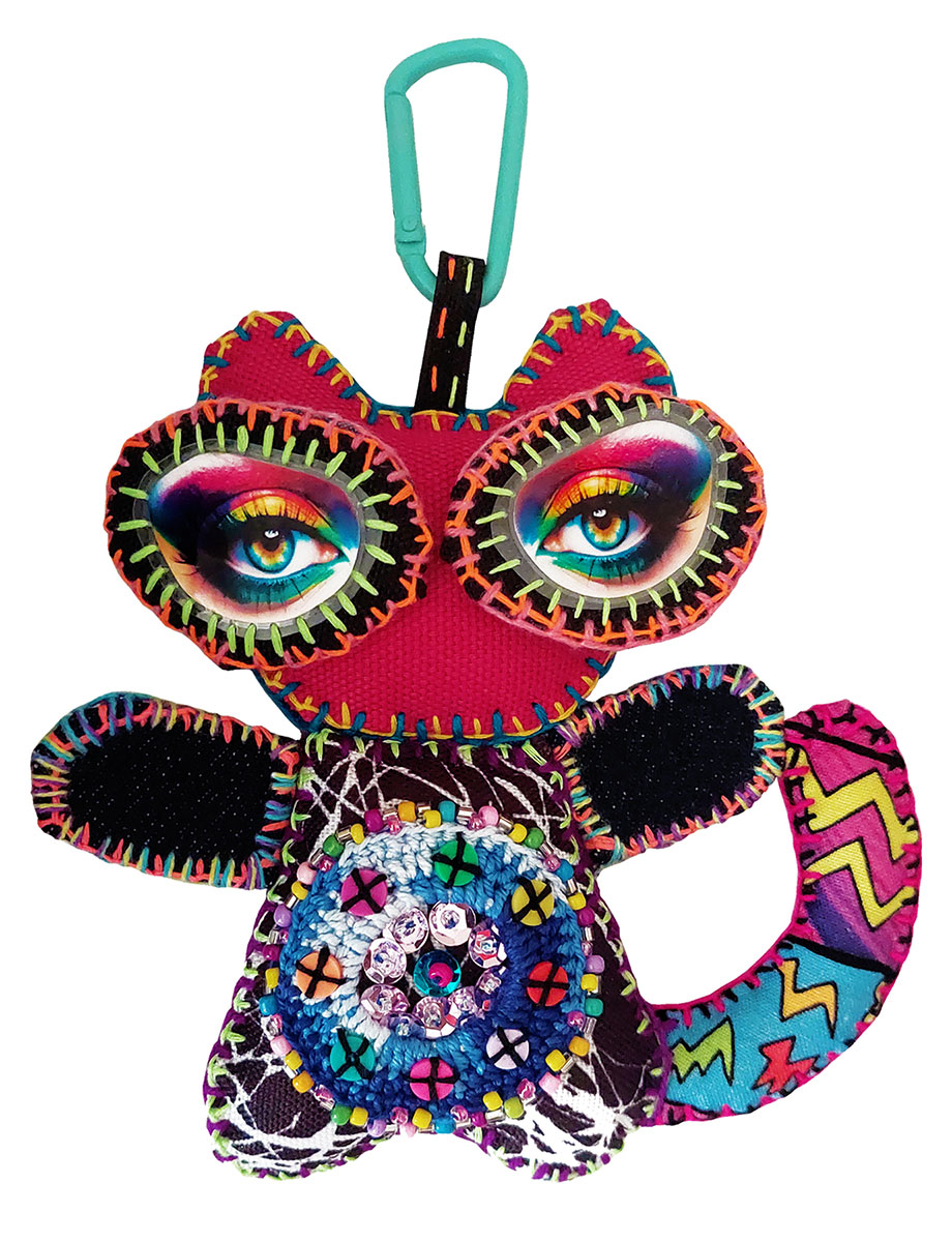 Her striking form beautifully weaves together vibrant colors and protective details, reflecting a spirit of resilience and self-assurance. She is an empowered mix of hand-stitched and crochet textures, intricate beadwork, and thoughtful design, a true one-of-a-kind creation who does not take crap from anyone.